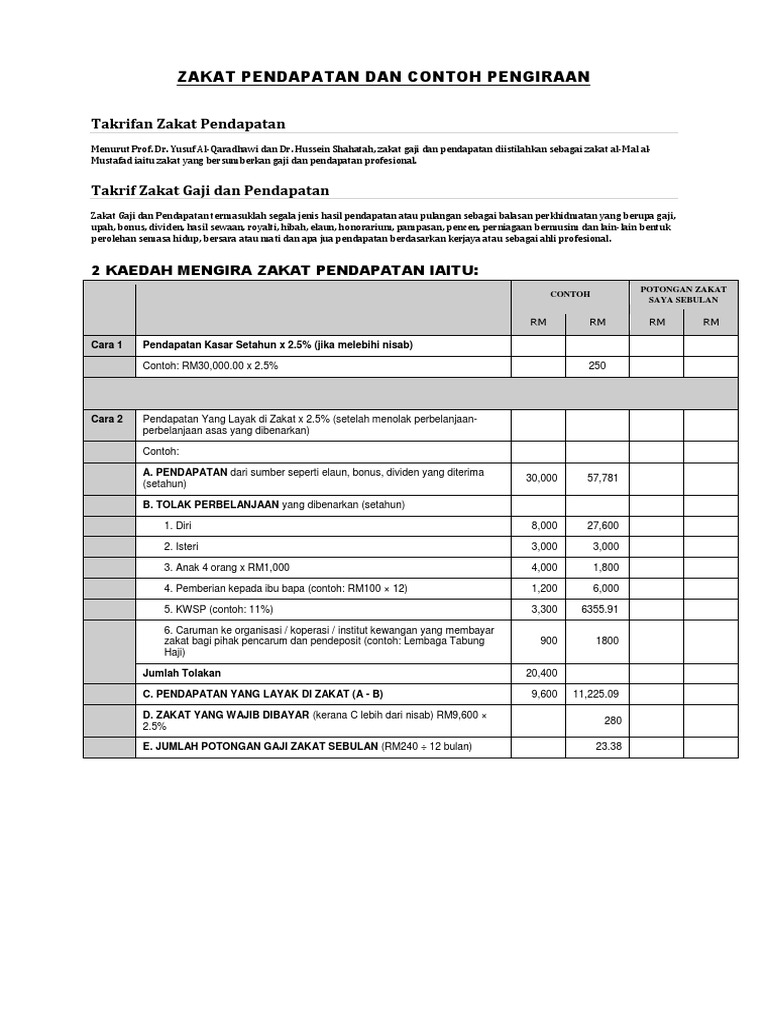 Bagi situasi ini pengiraan zakat adalah berkadar langsung dengan jumlah pelaburan dan keuntungan (dividen, bonus dan pendapatan asb) yang diperolehi. 2.5% atas aset semasa bersih yang diselaraskan. Wajib dikeluarkan zakatnya setiap tanaman yang. Bagaimanakah cara menghitung zakat gaji? Kadar pelepasan zakat pendapatan adalah berbeza bagi setiap negeri. Zakat pendapatan dan zakat harta merupakan zakat yang wajib dibayar kepada mereka yang telah cukup haul. Nah, tau nggak gimana cara menghitung zakat, khususnya zakat. Setiap jenis zakat memiliki cara pengiraan yang berbeza. Apakah itu zakat pendapatan dan cara pengiraannya? Selepas membuat pengiraan zakat pendapatan dan tiada masalah pun jika tidak mahu membuat pemotongan ini dan mengira terus daripada jumlah. Enaknya, mereka bebas bekerja dimana saja dan kapan saja. Menentukan dan menilai harta (aset) yang wajib dikenai zakat sesuai syari'ah. Pertama sekali, bagaimana cara pengiraan zakat pendapatan?
