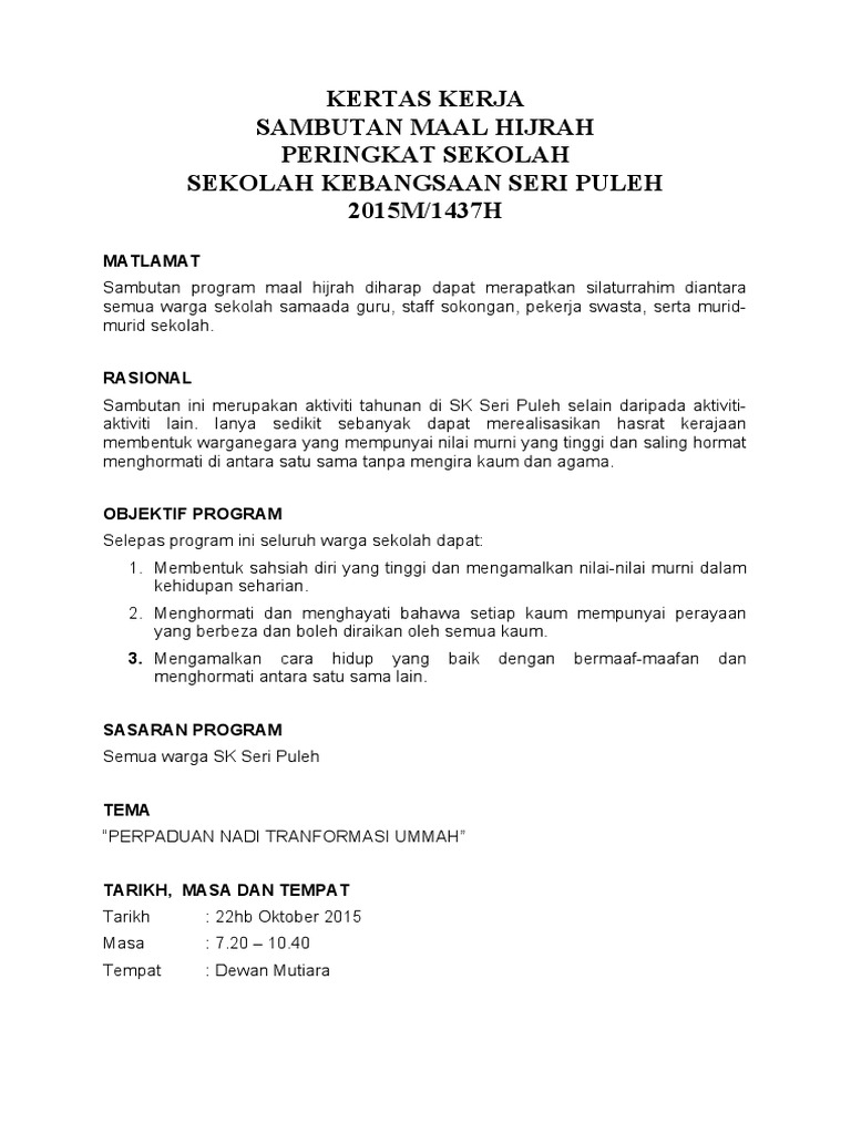 Semoga kita semua lebih faham tentang pengertian. 1.0 pendahuluan majlis sambutan maal hijrah ini diadakan pada setiap tahun apabila menjelangnya tahun baharu hijrah. Harap tahun baru ini akan memberi semangat dan azam baru kepada semua. Salam maal hijrah ntuk semua umat islam di deluruh dunia. Artikel ini membahas lengkap kertas kerja audit dari pengarsipan kepemilikan & kerahasiaan susunan metode indeks jenis syarat isi tujuan pengertian. Pengertian kertas kerja pemeriksaan (kkp) adalah : Semoga kita semua lebih faham tentang pengertian. Picture pertandingan mewarna kulit buku docx. Savesave kertas kerja sambutan maal hijrah for later. Lagu tema maal hijrah sempena sambutan majlis maal hijrah di malaysia. Lirik nasyid maal hijrah soutus sofwa maal hijrah menyingkap sejarah kisah perpindahan nabi muhammad dari kota makkah. Sebagai bukti bahwa auditor telah melaksanakan pemeriksaan sesuai dengan standar profesional akuntan publik. Analisa yang dibuat oleh auditor 3.